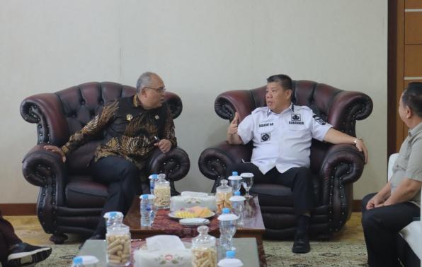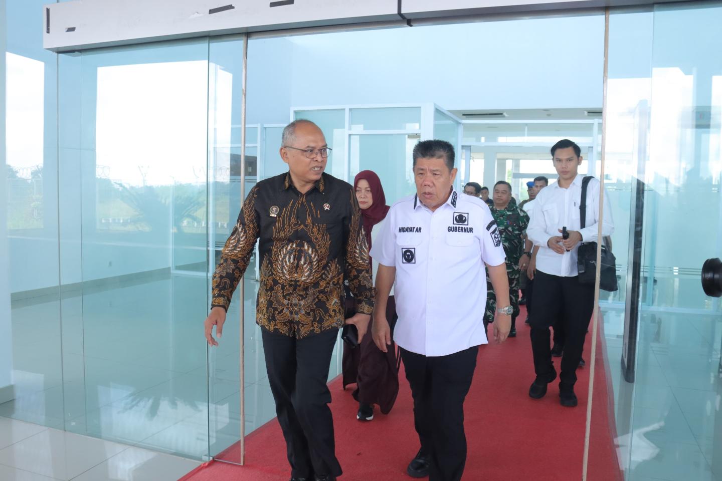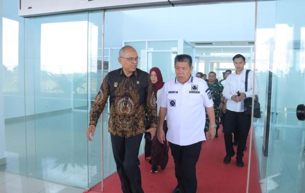PANGKALPINANG - Gubernur Kepulauan Bangka Belitung (Babel) Hidayat Arsani, didampingi oleh Penjabat (Pj) Sekretaris Daerah (Sekda) Fery Afriyanto dan kepala Perangkat Daerah, mengantarkan kepulangan Kepala Badan Siber dan Sandi Negara (BSSN) Letjen TNI Purn. Nugroho Sulistyo Budi, dan rombongan, Rabu (9/7/2025).