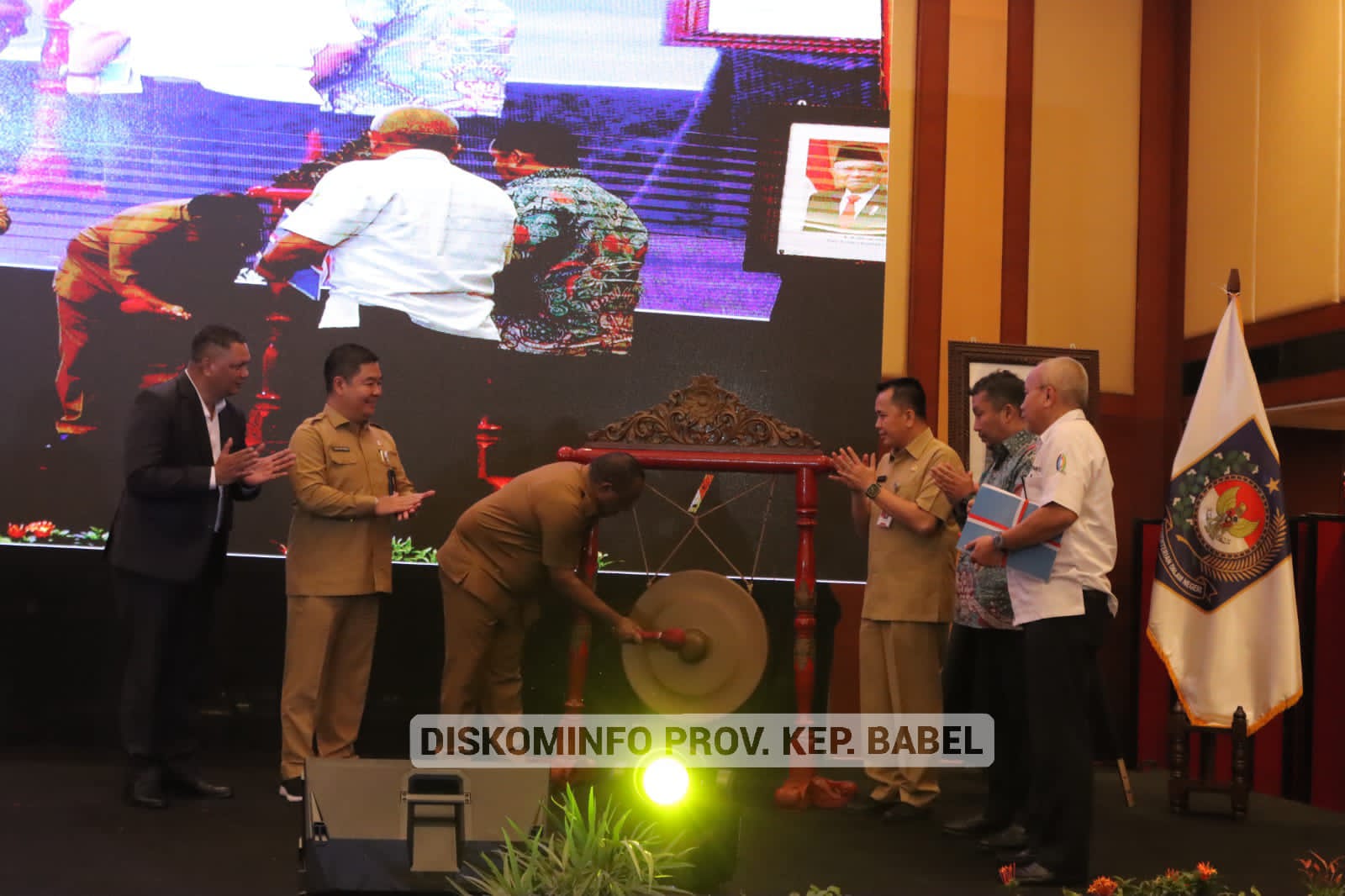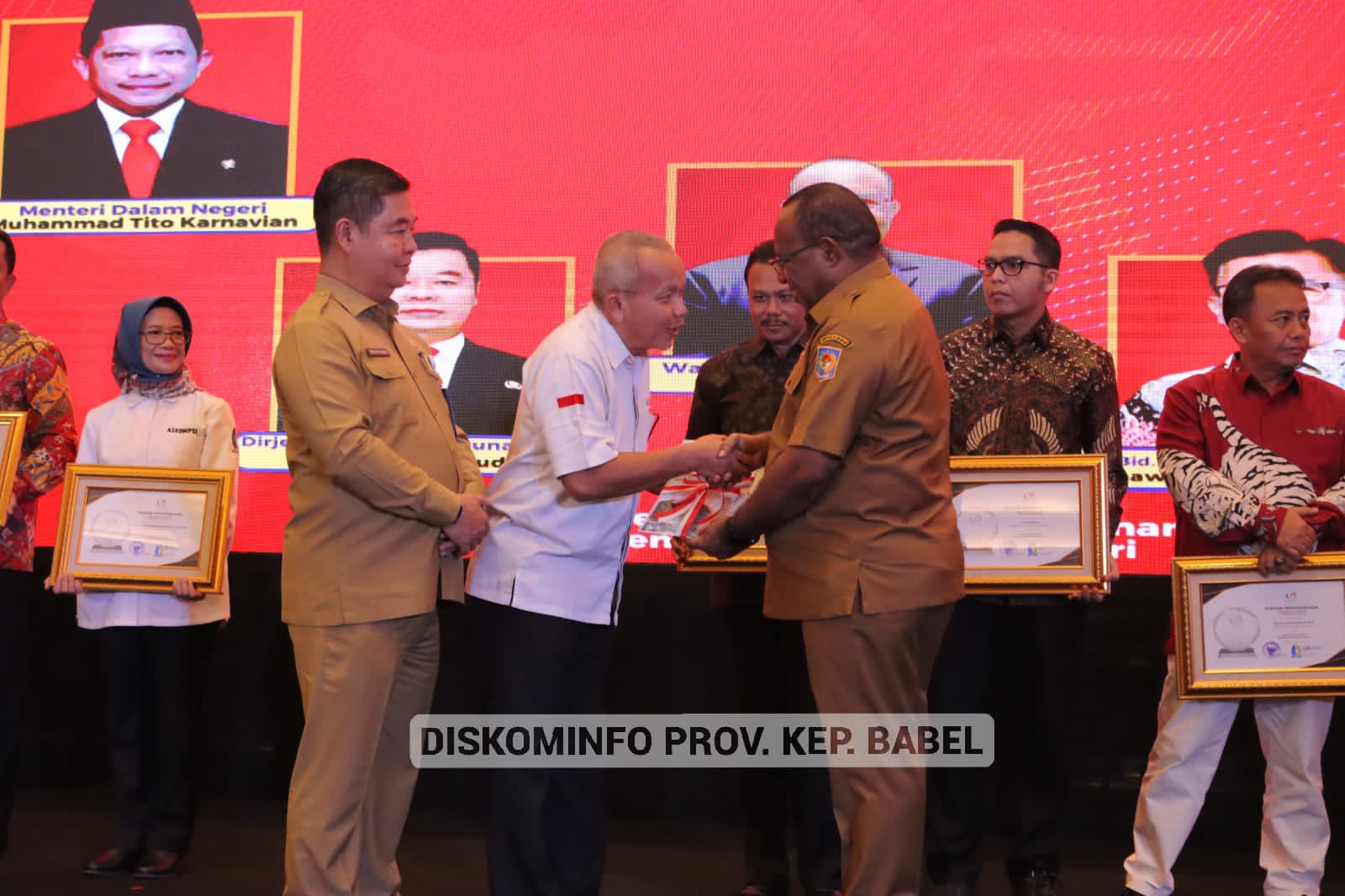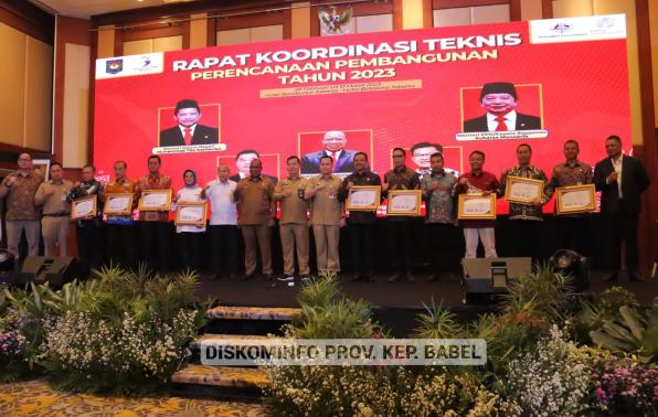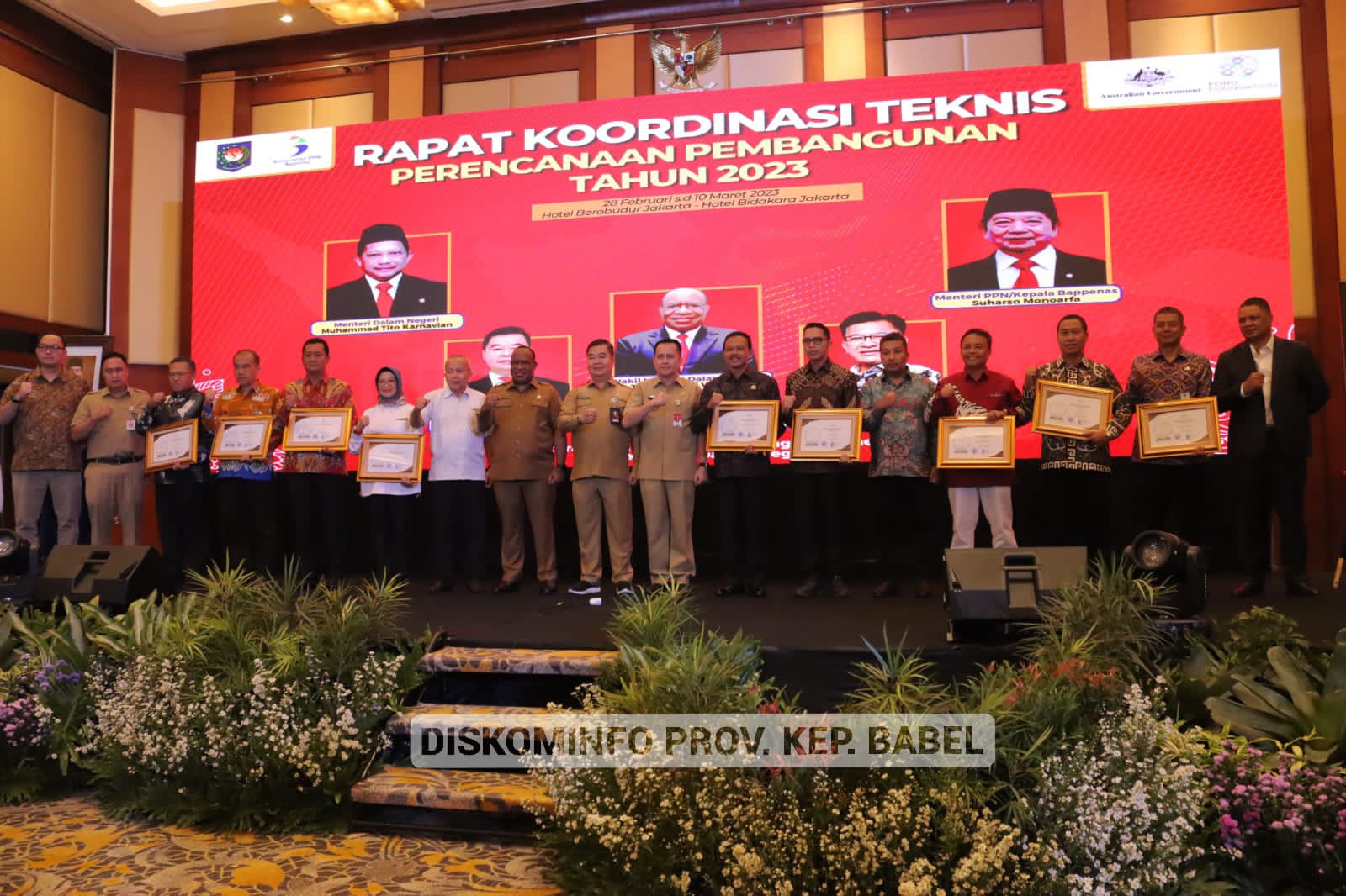 JAKARTA - Ketua Asosiasi Dinas Komunikasi dan Informatika Provinsi Seluruh Indonesia (ASKOMPSI) Sudarman, mendampingi Wakil Menteri Dalam Negeri RI, John Wetimpo, dan Dirjen Bina Pembangunan Daerah pada pembukaan Rapat Teknis Perencanaan Pembangunan (Rakortekrenbang) Tahun 2023, dan penyerahan penghargaan ASKOMPSI Digital Leadership Goverment (ADLG) Award 2022 di Hotel Borobudur Jakarta, Selasa (28/2/23).