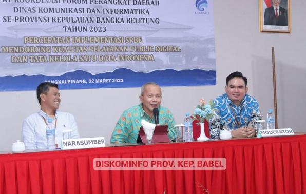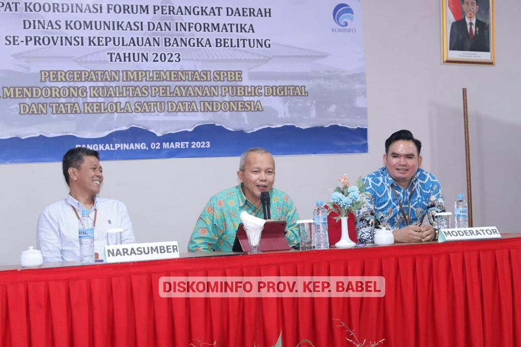 PANGKALPINANG - Dinas Komunikasi dan Informatika (Diskominfo) Provinsi Kepulauan Bangka Belitung (Kep. Babel) menggelar rapat koordinasi Forum Perangkat Daerah Dinas Kominfo se-Provinsi Kepulauan Bangka Belitung, di Fox Harris Hotel, Pangkalpinang, Kamis (2/3/2023).