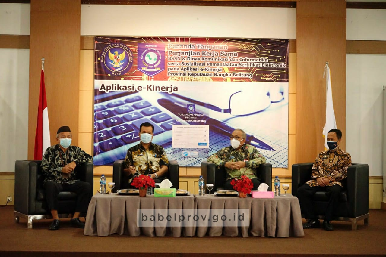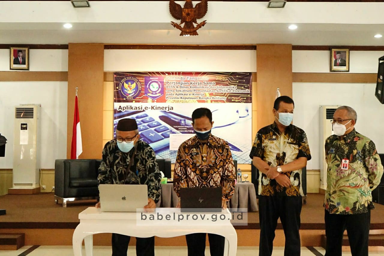 PANGKALPINANG – Gubernur Kepulauan Bangka Belitung (Babel), di wakili Asisten Perekonomian dan Pembangunan, Yanuar mengucapkan terimakasih kepada Badan Siber dan Sandi Negara (BSSN) melakukan kerja sama dalam pemanfaatan sertifikat elektronik dalam pelaksanaan administrasi pemerintahan di lingkungan Pemprov. Babel.