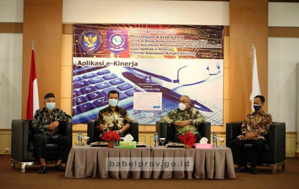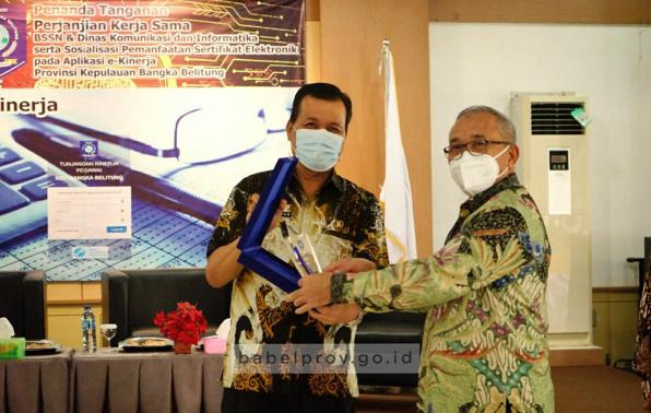 Di akhir kegiatan, penandatangan kerjasama dilakukan Kepala Dinas Kominfo Babel Sudarman dan Kepala Balai Sertifikasi Elektronik BSrE BSSN, Rinaldi.